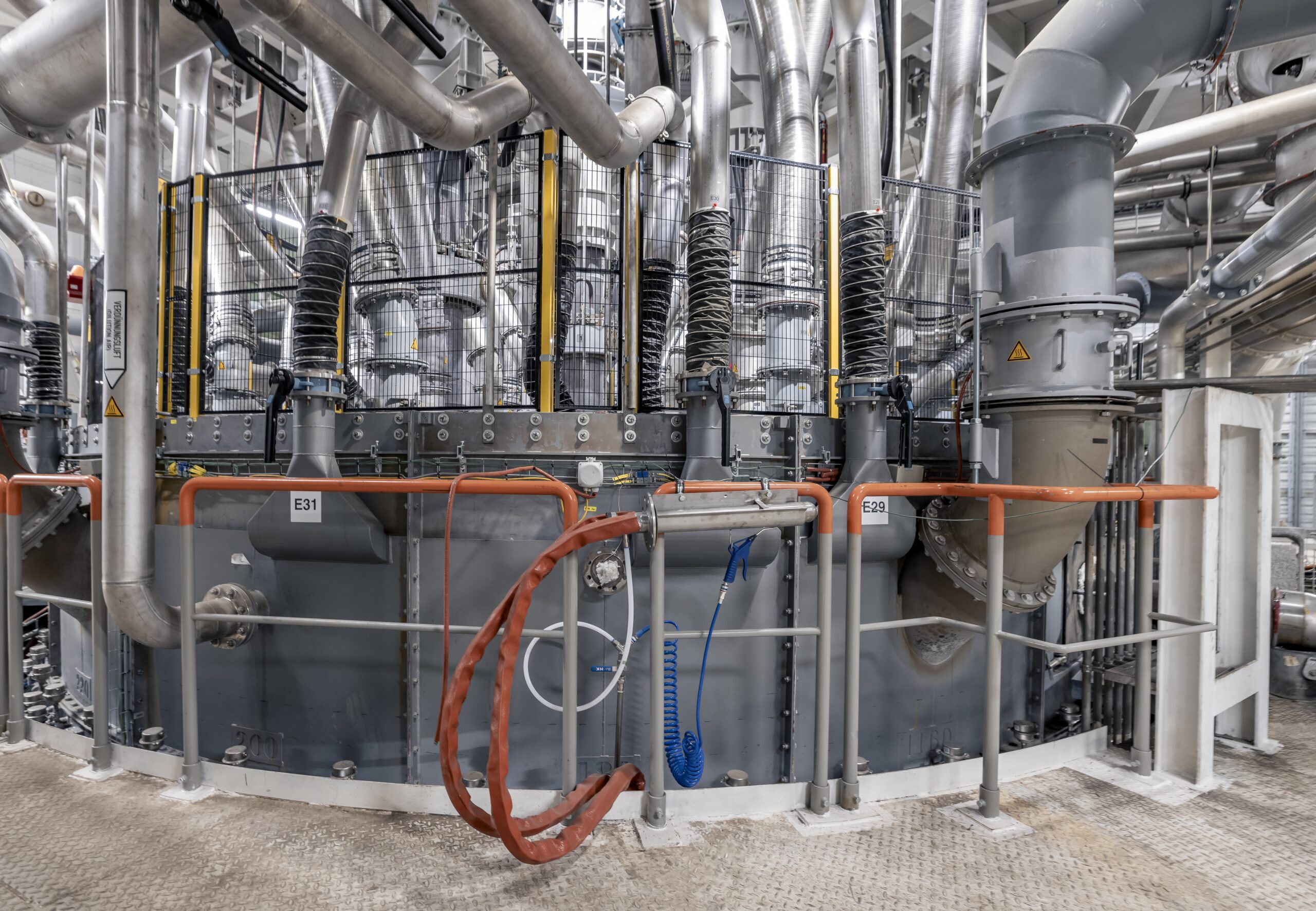 Er besteht aus Stahl, ist mit speziellen Schamottsteinen ausgemauert und wird wasser- und luftgekühlt. Es ist nicht nur der weltgrösste Elektroschmelzofen für Steinwolle, es ist auch der Einzige, der zwei Produktionslinien bedient.