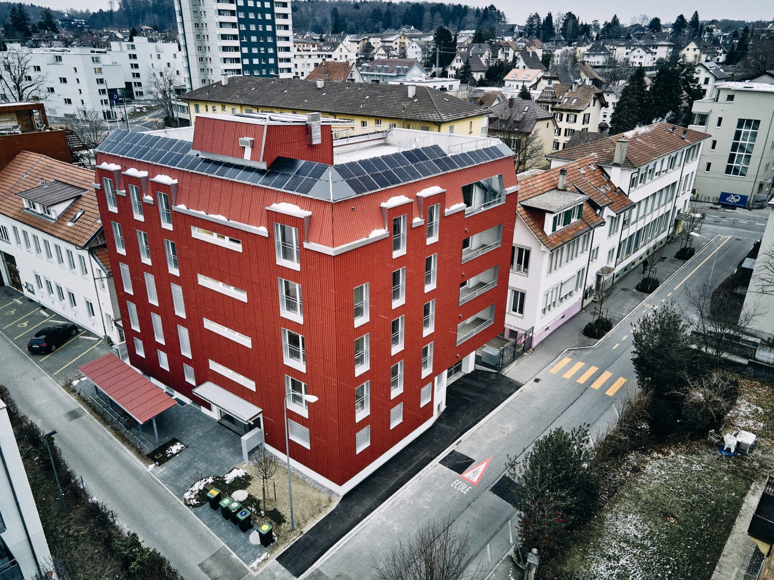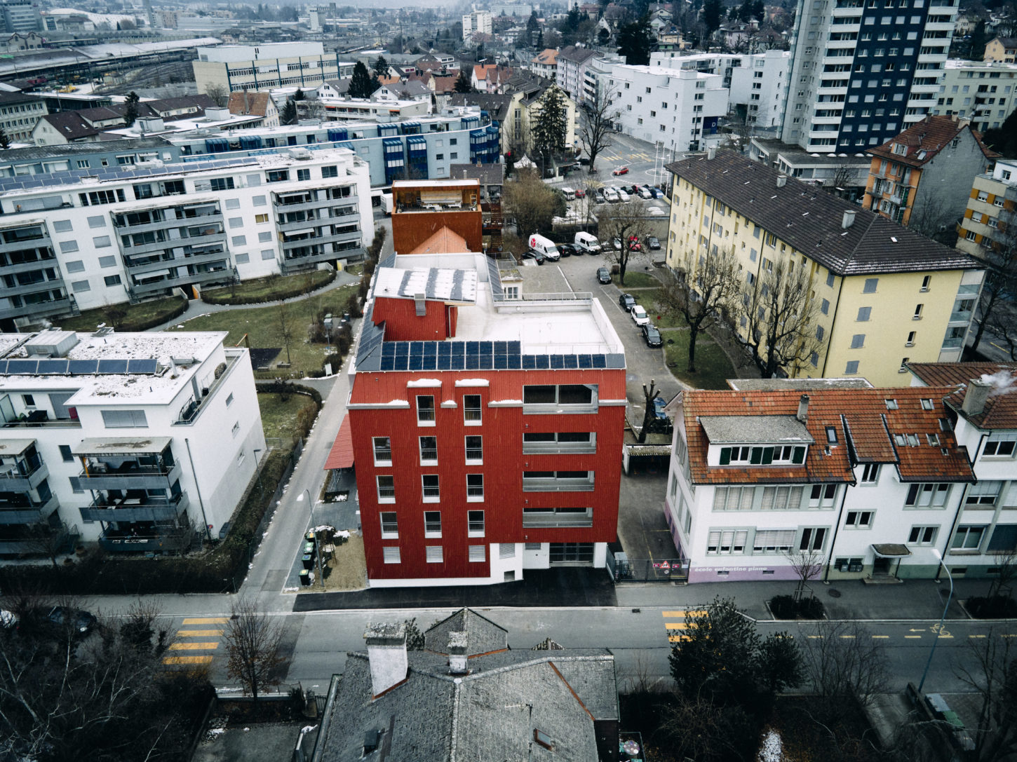 An der Pianostrasse 51 in Biel entstand ein modernes Stadthaus mit zehn Mietwohnungen im Minergie-Standard. Nebst grosszügigen Grundrissen steht den Mietern auch eine gemeinschaftliche Dachterrasse zur Verfügung. Auf dem Dach wurde zudem eine Photovoltaikanlage angebracht, die Fassade ist mit rotem Welleternit verkleidet.