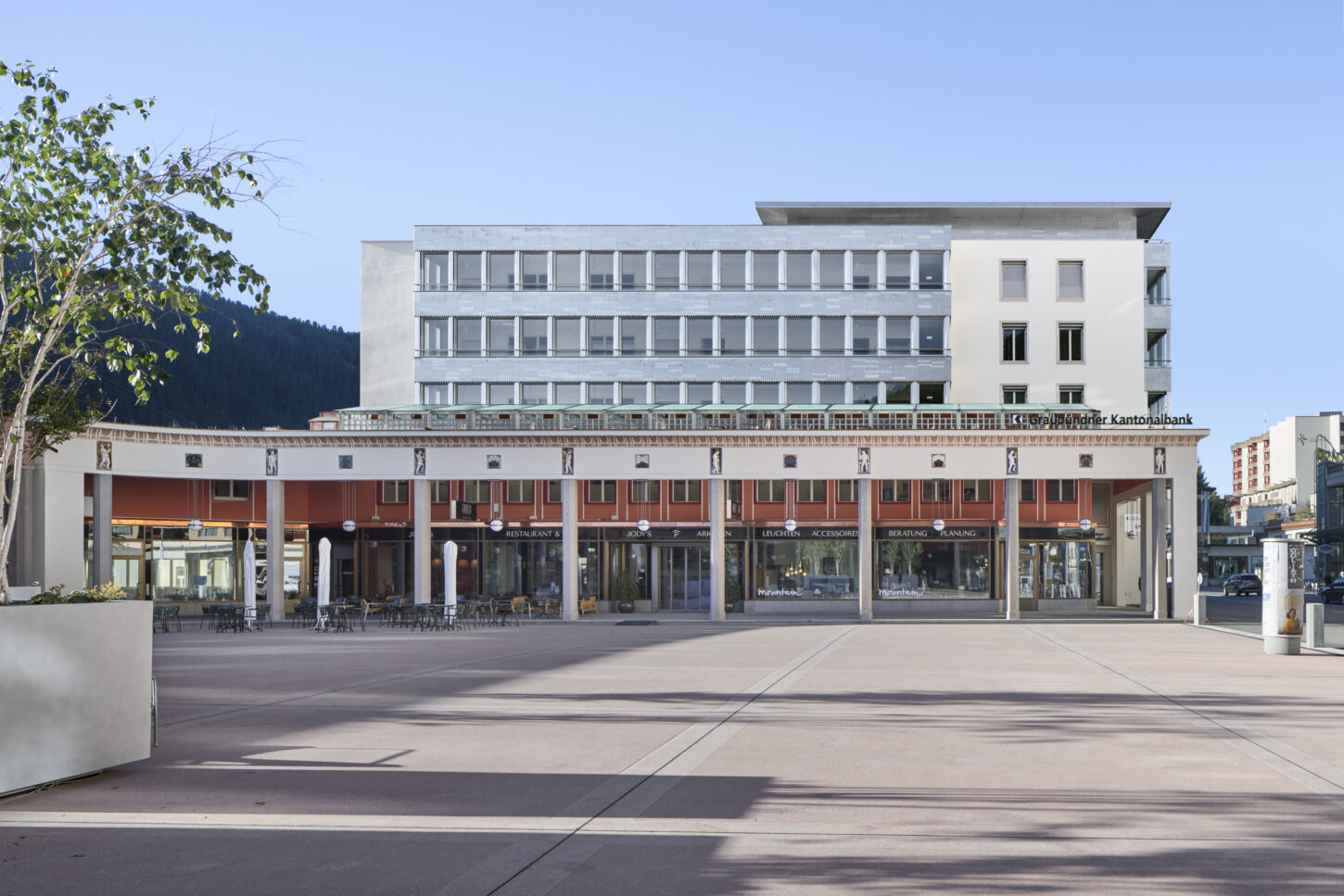An der Promenade in Davos Platz entstand der moderne Neubau des Regionalsitzes der Graubündner Kantonalbank. In dem Gebäude befinden sich nebst der Bank, ein Restaurant, zwei Geschäfte und 19 Mietwohnungen. Die Gemeinde hat zudem den Arkadenplatz neugestaltet, um ihn als öffentliche Begegnungszone zu nutzen. Die Parkplätze in der neuen Tiefgarage sind für die Allgemeinheit zugänglich, während separate Parkplätze für die Mieter der Wohnungen und die Kunden der Geschäfte bereitgestellt werden.